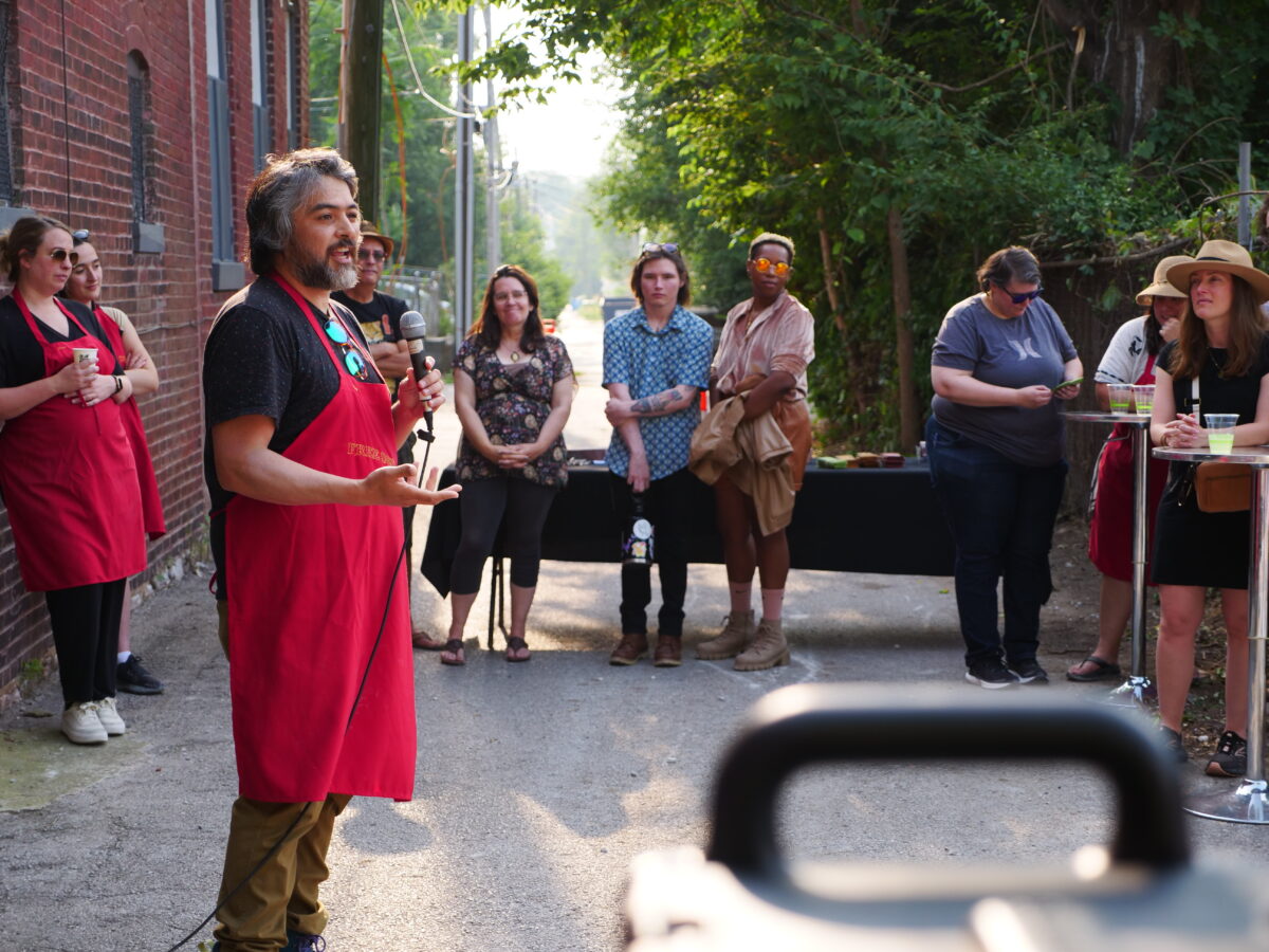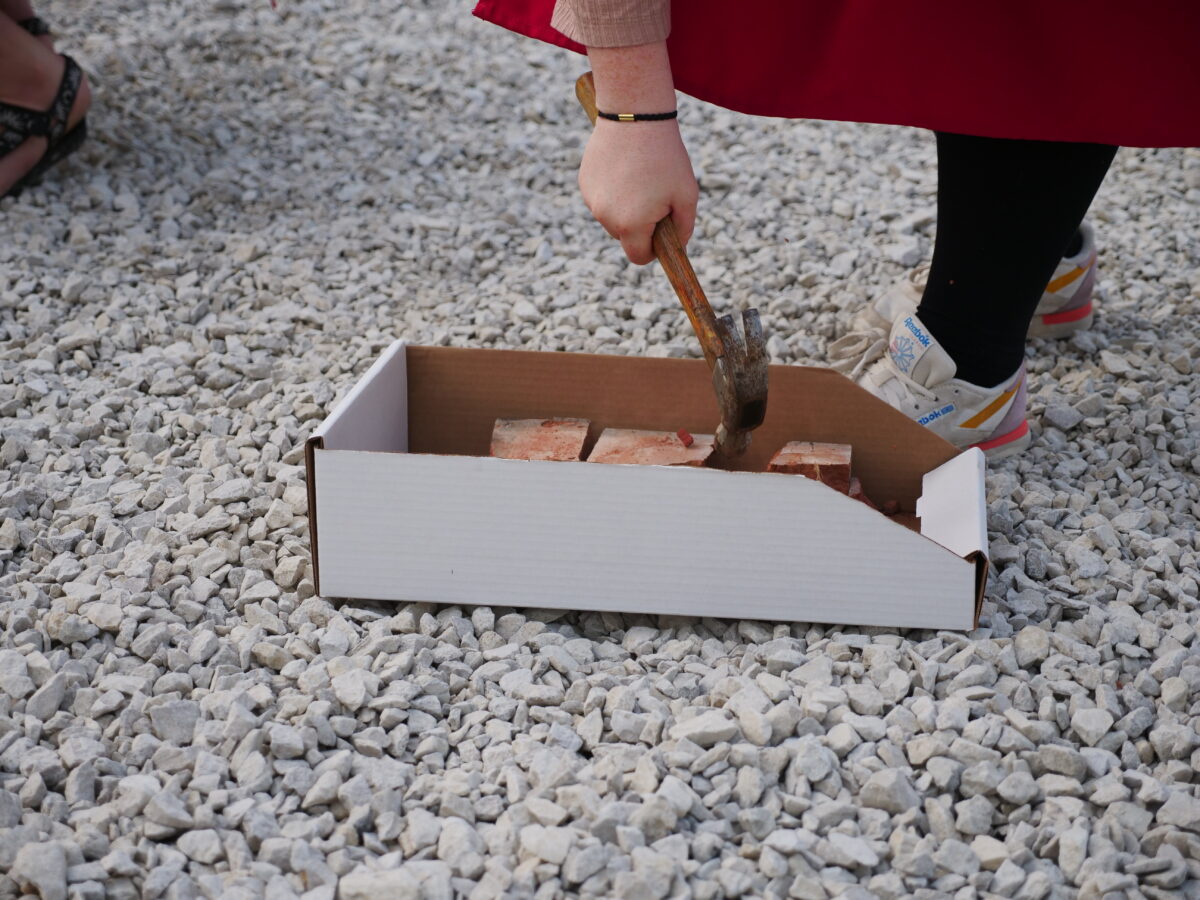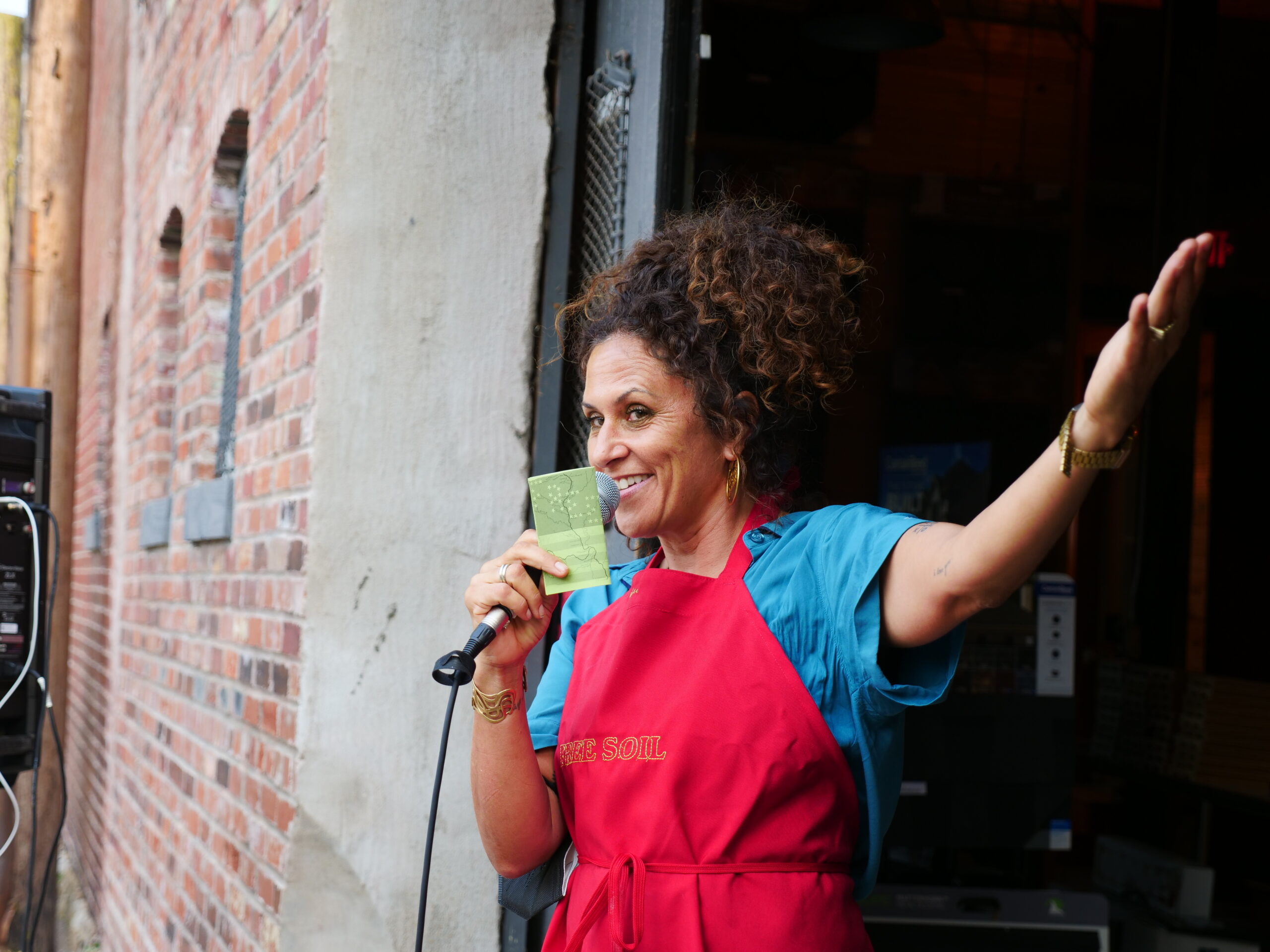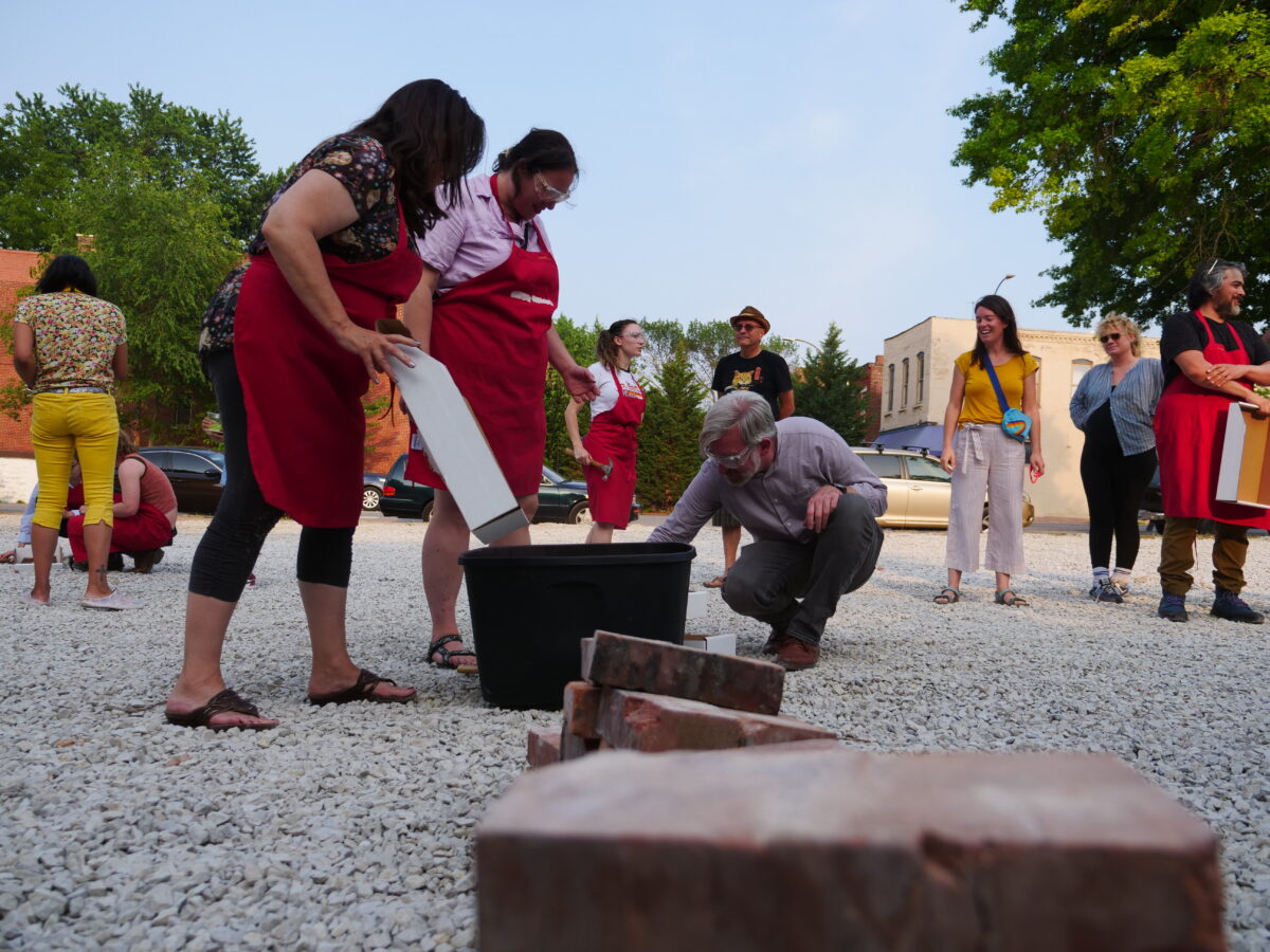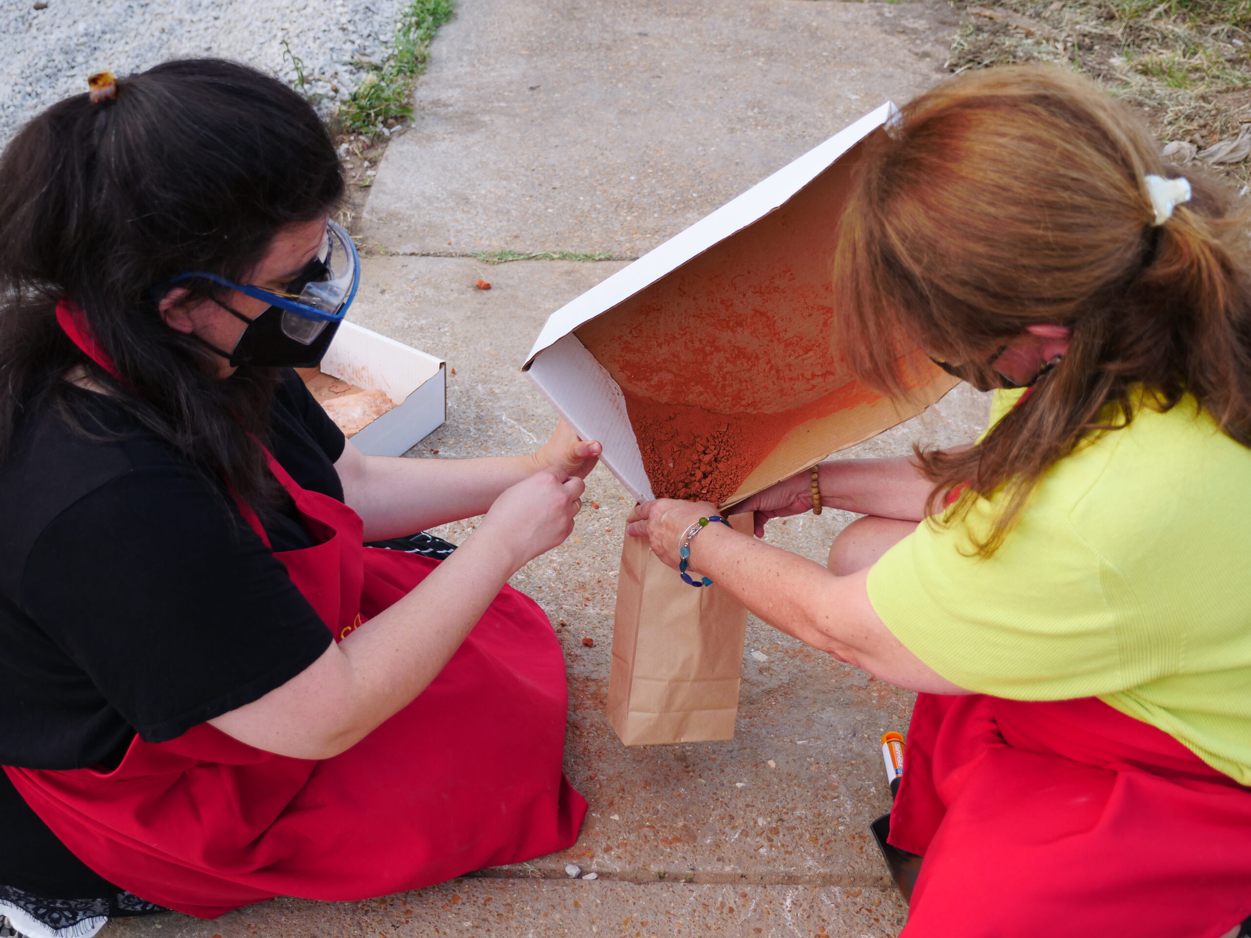 The first aspect of sumell’s project was a private ceremony of returning crushed bricks first, to dirt and then, to the quarries from which the clay used to make them was taken. The crushed dirt was then mixed with sand and the seeds of native pollinator plants, including echinacea, yarrow, bee balm, and goldenrod—chosen to ensure that the plants grown from sumell’s soil also help native bees thrive—to create a “free soil” that was distributed throughout the exhibition at Counterpublic 2023 information hubs.