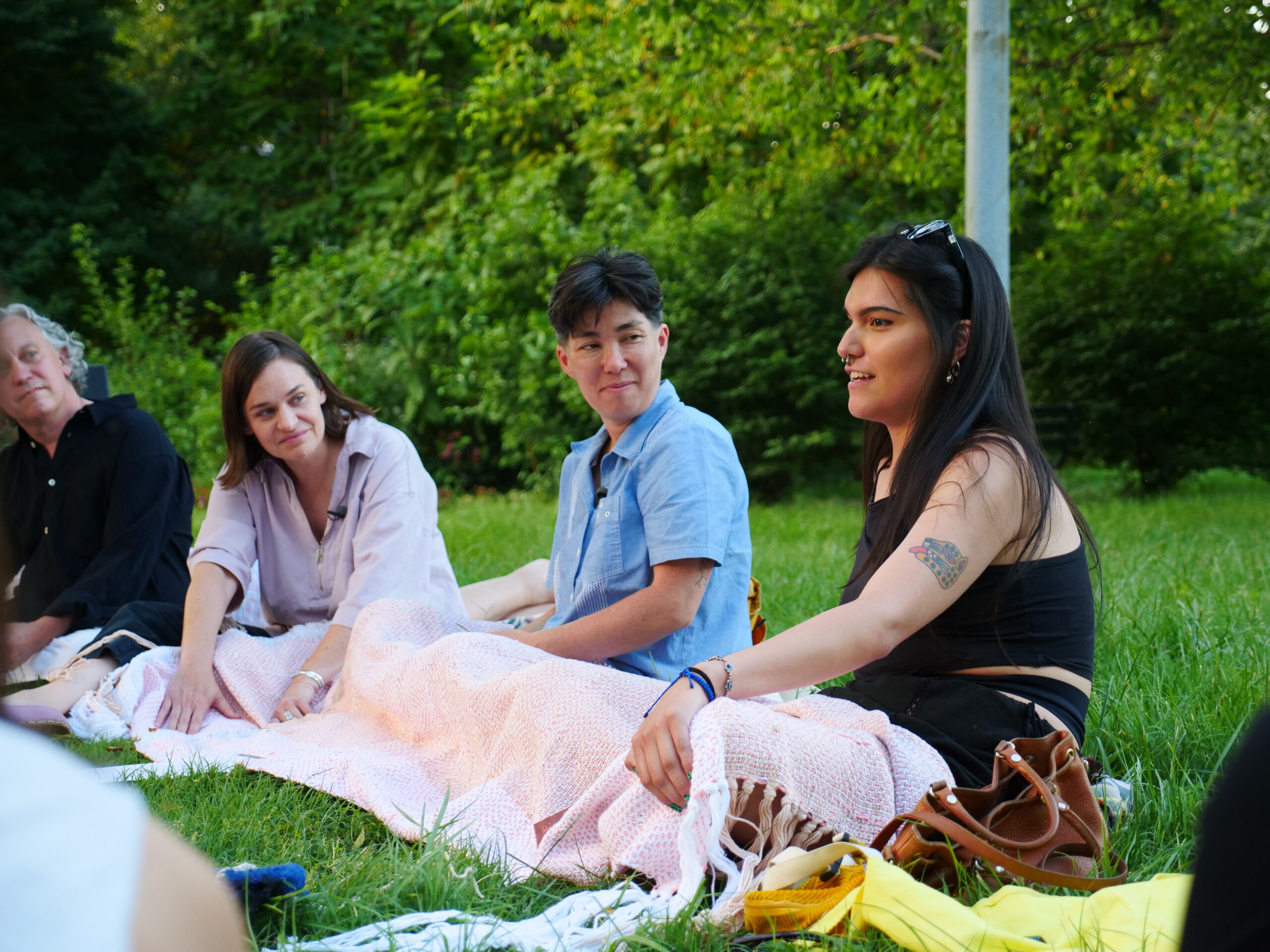 Spreading out a woven blanket so that we can find each other here, with Xochitl Plancarte