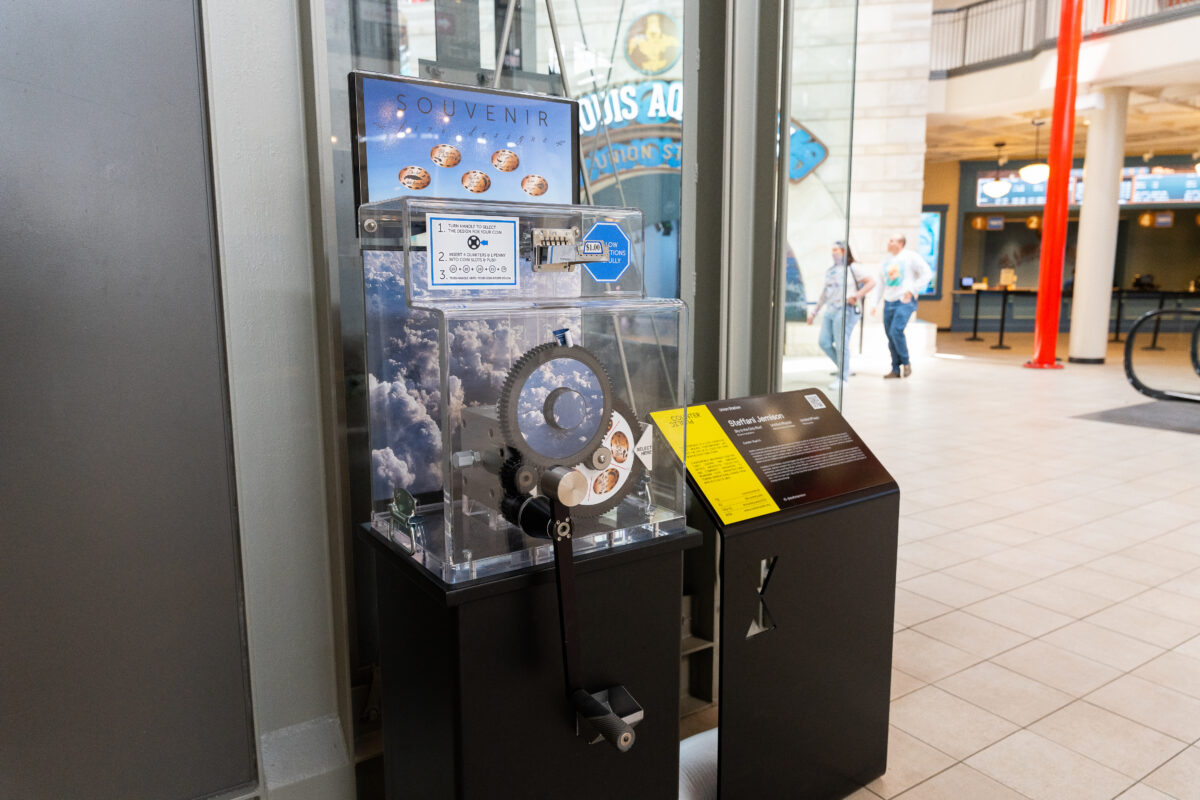 In the center of Union Station’s south entrance, Untitled (Press) was a functional penny press with fragments of lyrics invoking freedom sung by Baker (“sky is the only / roof I’ve ever had”).