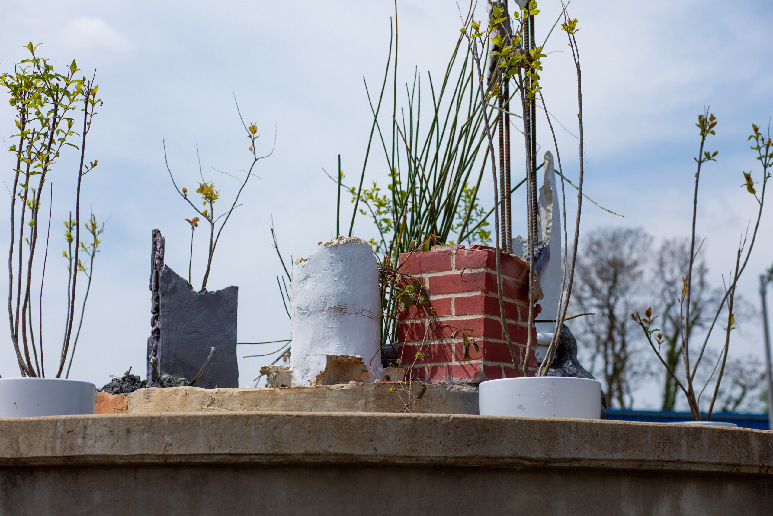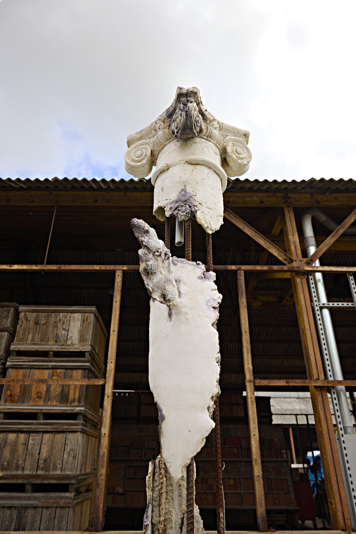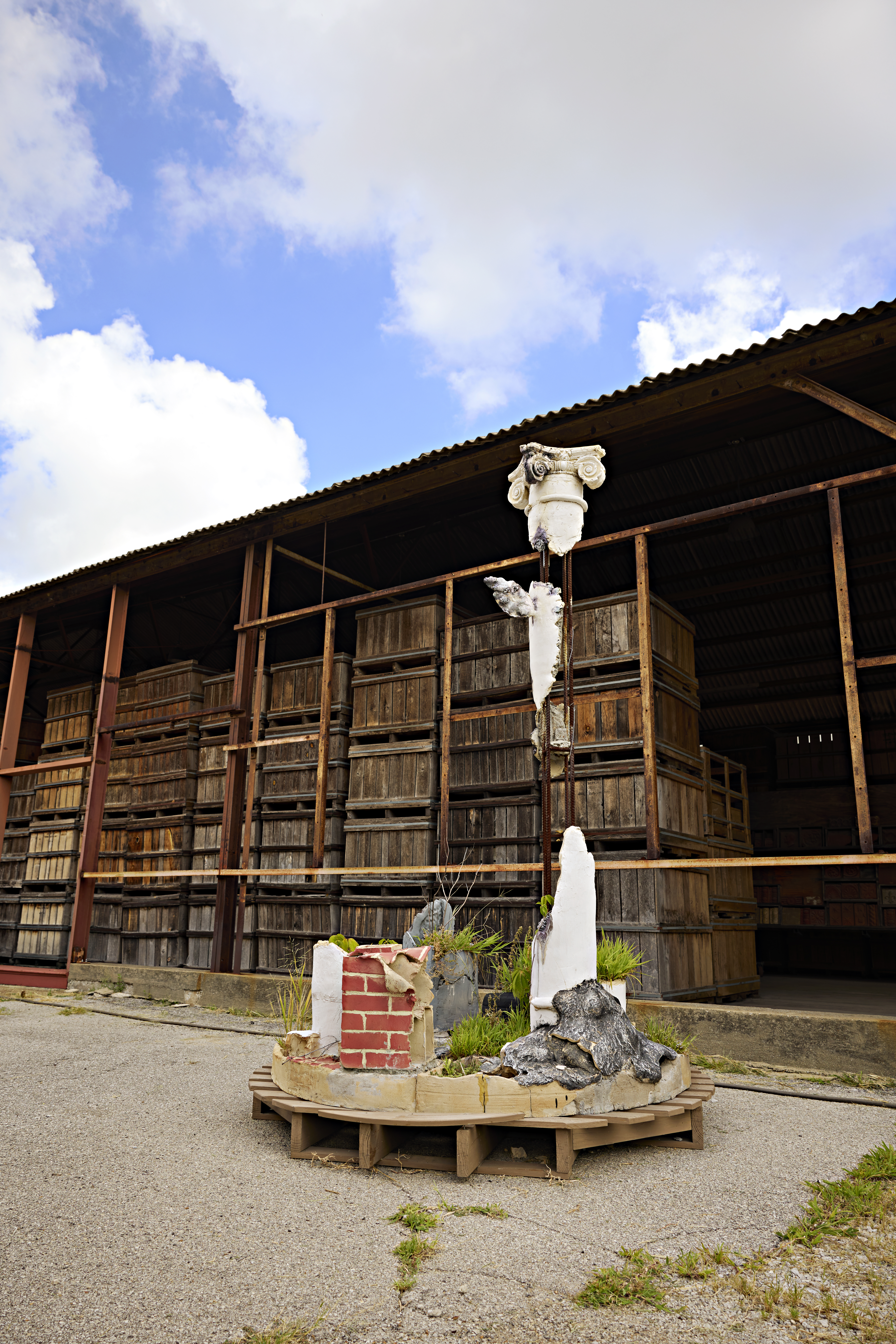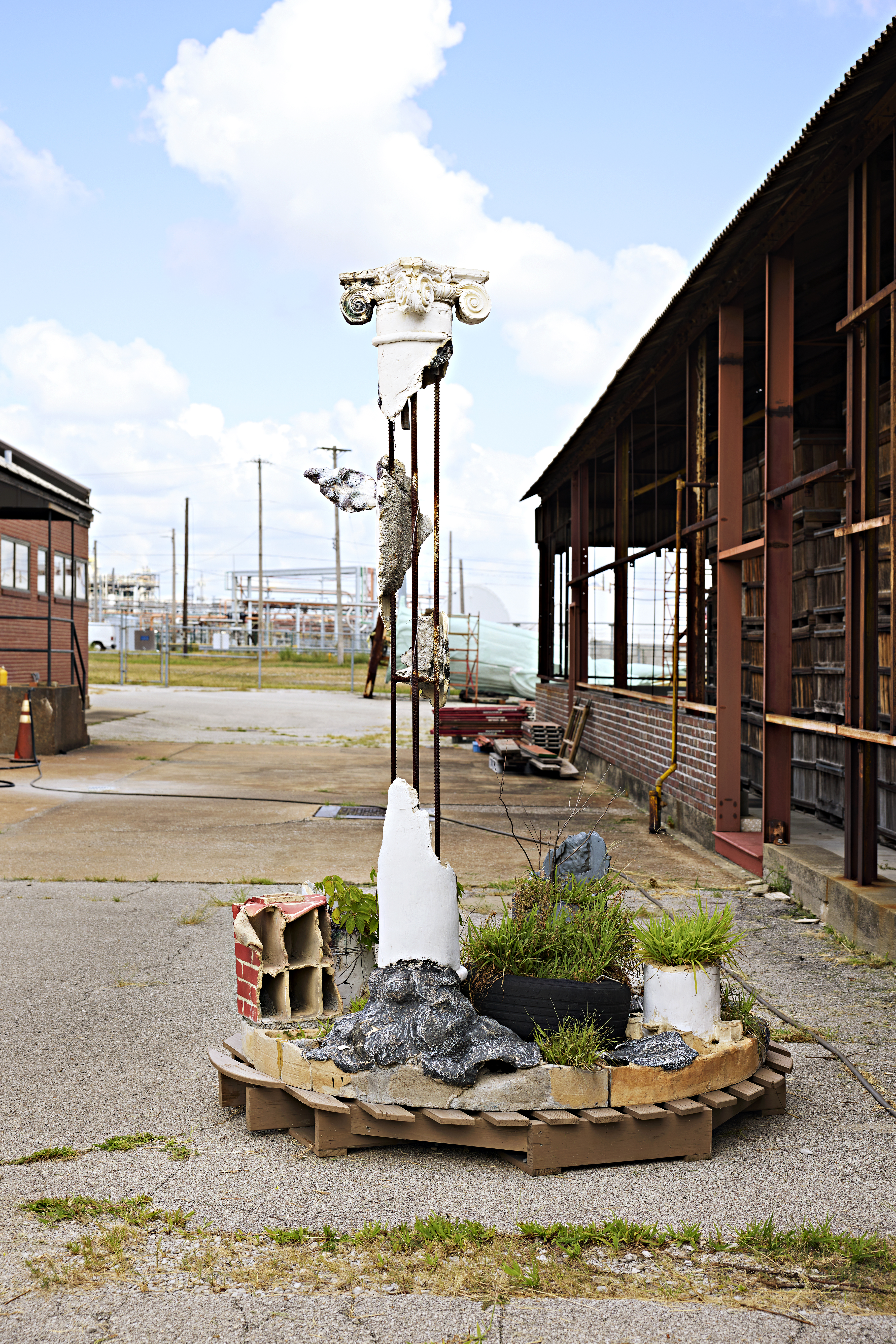 Following the 2023 exhibition, Three Columns was donated to the National Building Arts Center—across the river in Sauget, IL—and will be on display indefinitely and can be seen on their monthly tours. NBAC continues to invite collaborations with artists through projects that speak to and through their collections.